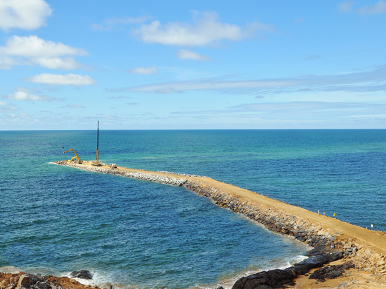 經(jīng)過(guò)博賀新港區(qū)建設(shè)者們的日夜奮戰(zhàn),截止8月11日,博賀新港區(qū)東防波堤推填至1935米,已完成其總長(zhǎng)度超三分之一。東防波堤1925米是越浪段與非越浪段的分界線。突破該里程后,為東防波堤內(nèi)側(cè)陸域填海提供了良好的掩護(hù)作用,為博賀新港區(qū)后續(xù)碼頭堆場(chǎng)工程開(kāi)工奠定了堅(jiān)實(shí)的基礎(chǔ)。今年2月份開(kāi)工的西防波堤也已推填至456米,至此,東西防波堤主體累計(jì)推填近2.4公里。
