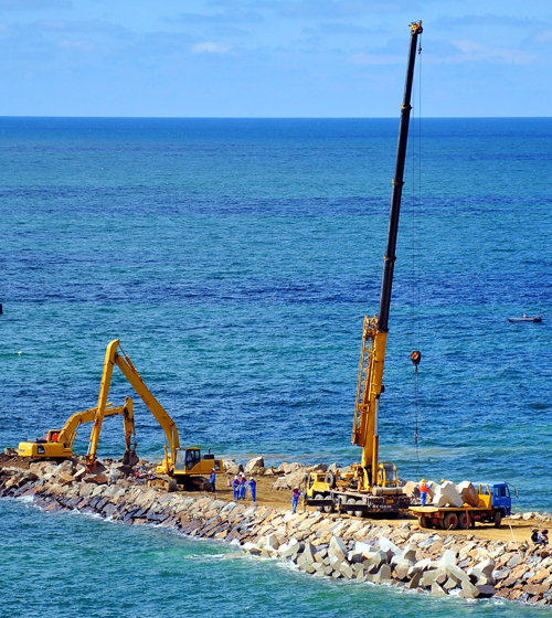 經(jīng)過(guò)開(kāi)發(fā)建設(shè)公司防波堤項(xiàng)目管理團(tuán)隊(duì)狠抓兩個(gè)措施的落實(shí),強(qiáng)力督促施工單位做好防波堤堤身防護(hù),并同步加快推進(jìn)防波堤的里程進(jìn)展,突破了制約施工進(jìn)展瓶頸,為完成東西防波堤今年的目標(biāo)計(jì)劃做好了充分準(zhǔn)備。