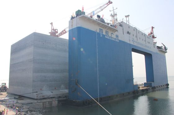 沉箱正緩緩上船