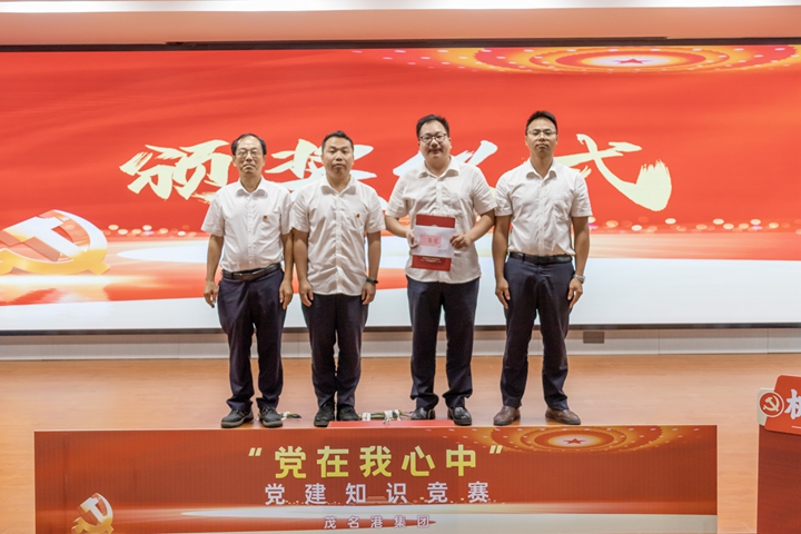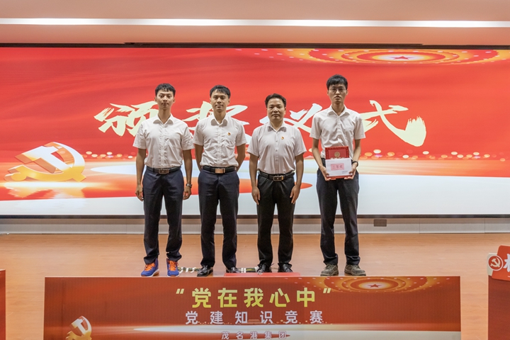 “用思想武裝隊(duì)伍,用信念鑄就未來(lái)”,9月12日,茂名港集團(tuán)為打造一支敢擔(dān)當(dāng)講奉獻(xiàn)的干部隊(duì)伍,開(kāi)展了“黨在我心中”黨建知識(shí)競(jìng)賽,來(lái)自集團(tuán)以及各下屬企業(yè)黨支部的7支隊(duì)伍展開(kāi)了精彩的角逐。集團(tuán)黨委副書(shū)記、總裁肖炳璋,集團(tuán)黨委委員、總工程師蔡光章,集團(tuán)黨委委員、副總裁周成出席活動(dòng),來(lái)自機(jī)關(guān)各部(室)、下屬企業(yè)黨員干部職工代表80多名同志觀看比賽。 “黨在我心中”黨建知識(shí)競(jìng)賽含有黨史、新中國(guó)史、改革開(kāi)放史、社會(huì)主義發(fā)展史、黨的二十大相關(guān)知識(shí)、習(xí)近平總書(shū)記視察廣東重要講話重要指示相關(guān)內(nèi)容、集團(tuán)發(fā)展史、集團(tuán)企業(yè)文化等內(nèi)容,涉及面廣、涵蓋面寬,設(shè)有必答題、搶答題、風(fēng)險(xiǎn)題、觀眾題等環(huán)節(jié)。比賽采用積分賽制,按分?jǐn)?shù)高低排出名次。 在必答題環(huán)節(jié),各參賽隊(duì)伍發(fā)揮穩(wěn)定,不相上下;搶答題環(huán)節(jié),參賽隊(duì)員聚精會(huì)神、踴躍搶答,將整場(chǎng)比賽推向了高潮;在最后一關(guān)“風(fēng)險(xiǎn)題”環(huán)節(jié),各隊(duì)采取穩(wěn)中求進(jìn)的戰(zhàn)略,力保答題的正確率;競(jìng)賽設(shè)有觀眾題環(huán)節(jié),將趣味性和氛圍感拉滿。