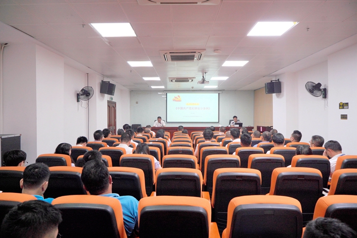 茂名港集團(tuán)持續(xù)推進(jìn)黨紀(jì)學(xué)習(xí)教育走深走實,為進(jìn)一步加強(qiáng)對新修訂《中國共產(chǎn)黨紀(jì)律處分條例》(以下簡稱“條例”)的深入理解和掌握,6月21日,集團(tuán)特邀茂名市委黨校政治教研室主任譚文韜作黨紀(jì)學(xué)習(xí)教育專題宣講。集團(tuán)黨委委員、副總裁楊超燦主持會議。集團(tuán)黨委領(lǐng)導(dǎo)班子成員、集團(tuán)中層以上領(lǐng)導(dǎo)、各黨支部委員、黨員代表約60人參加報告會。![]() 宣講會上,譚文韜從《條例》修訂的特點和意義、修訂的情況、貫徹落實三個維度,以翔實的資料、生動的語言、嚴(yán)密的邏輯、典型的案例,對《條例》全面系統(tǒng)地導(dǎo)學(xué)和深入淺出地解讀。宣講主題鮮明、內(nèi)容豐富、闡釋透徹,既有理論高度、思想深度,又有很強(qiáng)的警示性和權(quán)威性,為集團(tuán)黨員干部全面理解把握《條例》的精神實質(zhì)和實踐要求提供了有力指導(dǎo)。 會議指出,加強(qiáng)黨紀(jì)學(xué)習(xí)教育是一項長期而艱巨的任務(wù),需要持續(xù)用力、久久為功。集團(tuán)各級黨組織要堅持兩手抓兩促進(jìn),把開展黨紀(jì)學(xué)習(xí)教育同推進(jìn)集團(tuán)重點項目建成投產(chǎn)、生產(chǎn)經(jīng)營、改革發(fā)展、融資管理等工作緊密結(jié)合起來,以更加飽滿的熱情、更加務(wù)實的作風(fēng)、更加堅定的決心,推動黨紀(jì)學(xué)習(xí)教育深入開展,以黨紀(jì)學(xué)習(xí)教育成效助力集團(tuán)高質(zhì)量發(fā)展。(通訊員:曹曉琳) |