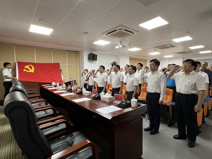 在表彰大會(huì)上,面對(duì)鮮紅的黨旗,全體黨員面向鮮艷的黨旗舉起右拳,莊嚴(yán)宣誓,回顧對(duì)黨和人民的承諾,進(jìn)一步錘煉對(duì)黨的絕對(duì)忠誠(chéng)品格。
