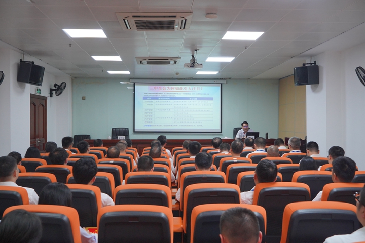 8月29日,茂名港集團(tuán)組織開展學(xué)習(xí)貫徹黨的二十屆三中全會精神宣講報告會,會議邀請中共茂名市委黨校常務(wù)副校長何小春教授作專題宣講。集團(tuán)黨委副書記、總裁朱廣宇主持會議。