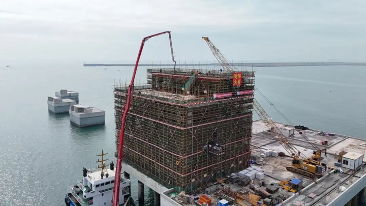 12月25日,隨著最后一方混凝土在工作樓頂層澆筑成型,茂名港博賀新港區(qū)30萬(wàn)噸級(jí)原油碼頭工程工作樓順利封頂。從項(xiàng)目藍(lán)圖到喜封金頂,不僅標(biāo)志著項(xiàng)目取得了重要的階段性勝利,也是30萬(wàn)噸級(jí)原油碼頭項(xiàng)目臨時(shí)黨支部在2024年取得的又一勝利戰(zhàn)果。