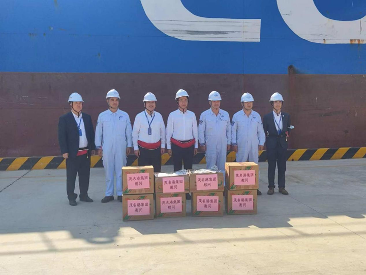 中遠海運能源公司副總經(jīng)理秦炯、中遠海運能源公司油輪事業(yè)部副總經(jīng)理陳俊偉等一行在茂名港集團副總裁李昱祺的陪同下,來到?吭诿奂瘓F東區(qū)化工碼頭E12泊位的“遵義潭”油輪上慰問船員,中遠海運能源公司廣州中心副總經(jīng)理施偉民與茂名港集團商務(wù)部負責(zé)人等陪同慰問。
