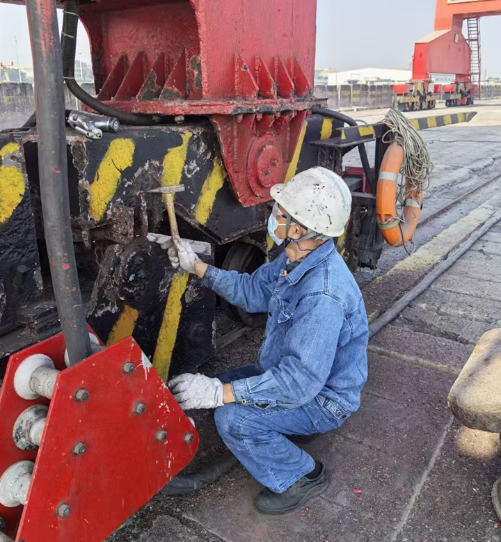 在港口經(jīng)營(yíng)公司,經(jīng)常會(huì)看到幾個(gè)形色沖沖,身穿湛藍(lán)色工作服、頭戴安全帽、手戴一雙沾滿油污的手套,掛著沉甸甸的工具包忙碌在港口生產(chǎn)一線,努力保障公司生產(chǎn)設(shè)備正常運(yùn)行的人。他們聚力攻堅(jiān)、降本增效,想方設(shè)法在修舊利廢、小改小革等各項(xiàng)工作中辛勤耕耘,他們持續(xù)沖鋒,不辭艱辛地在40米高空吊機(jī)的鐵壁機(jī)件中維修整治,他們是一支關(guān)鍵時(shí)刻能扛得了重活、打得了硬仗、經(jīng)得起磨練的黨員干部隊(duì)伍;他們就是港口經(jīng)營(yíng)公司“疑難雜癥”的“維修大夫”——機(jī)械維修班組。 檢修作業(yè)以“高標(biāo)準(zhǔn)”“精細(xì)化”為工作目標(biāo),堅(jiān)持檢修操作“零隱患”班組管理“零隱患”作業(yè)原則。作為機(jī)械維修工,維修班的成員們嚴(yán)格遵守操作規(guī)程,提高檢修工作質(zhì)量,加強(qiáng)安全管理,發(fā)現(xiàn)隱患立即整改,不放過任何工作中遇到的疑點(diǎn)難點(diǎn)問題,提升工作效率和力度,保證維修安全和質(zhì)量。無論是凌晨還是深夜,他們只要接到電話,便即刻趕往搶修現(xiàn)場(chǎng),積極完成搶修任務(wù),確保系統(tǒng)的穩(wěn)定運(yùn)行,個(gè)個(gè)成長(zhǎng)為精通‘望、聞、問、切’的機(jī)械維修工人,擔(dān)當(dāng)起港口經(jīng)營(yíng)公司機(jī)械維修班組的‘行家里手’和‘工匠技師’。