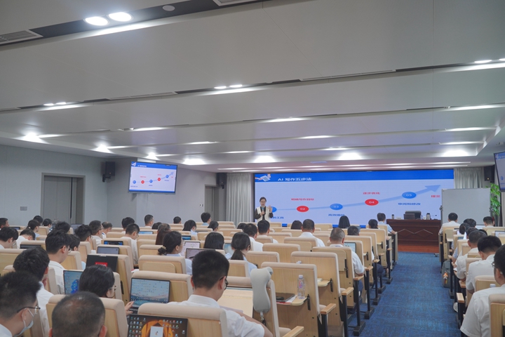 5月22日,集團(tuán)在港務(wù)中心成功舉辦“Ai上寫作”專題培訓(xùn)。集團(tuán)黨委委員、副總裁周成出席并致辭,集團(tuán)機(jī)關(guān)及各下屬企業(yè)的100余名干部職工參加培訓(xùn)。