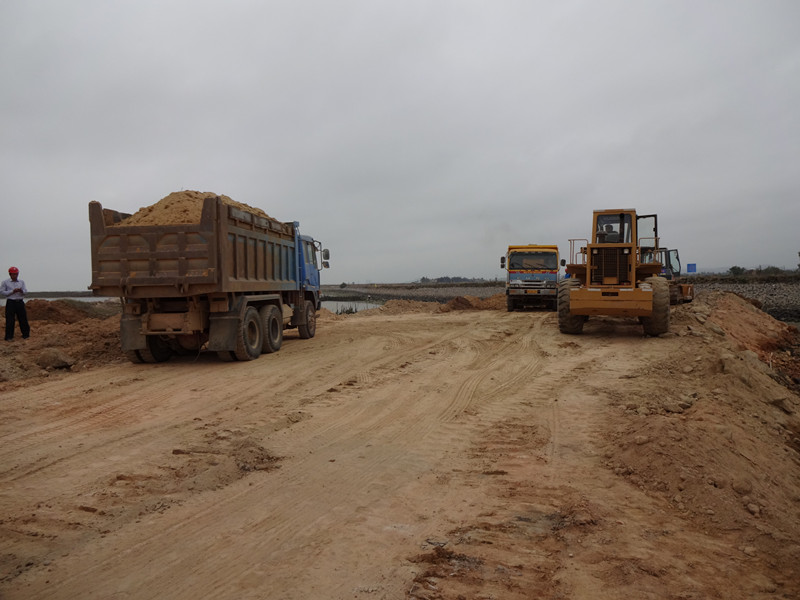 在博賀灣大道工程主干道向前推進(jìn)的700米處有兩個(gè)魚塘屬當(dāng)?shù)卮迕褚腊5踢`法圈建的,不具備合法手續(xù)。由于魚塘的阻礙,博賀灣大道建設(shè)工作難以繼續(xù)向前推進(jìn),影響了濱海新區(qū)其余沿線建設(shè)項(xiàng)目的推進(jìn)。對(duì)此,依照劉乃英副總裁的指示,濱?毓捎邢薰卷(xiàng)目管理部部長(zhǎng)張敬同志帶領(lǐng)全項(xiàng)目組員工,按照深入開展黨的群眾路線教育實(shí)踐要求,在開挖推填魚塘前,深入當(dāng)?shù)厝罕娭,積極與多方溝通協(xié)調(diào),得到了當(dāng)?shù)卮迕竦睦斫夂椭С,為博賀灣大道順利向前推進(jìn)做好了準(zhǔn)備工作。